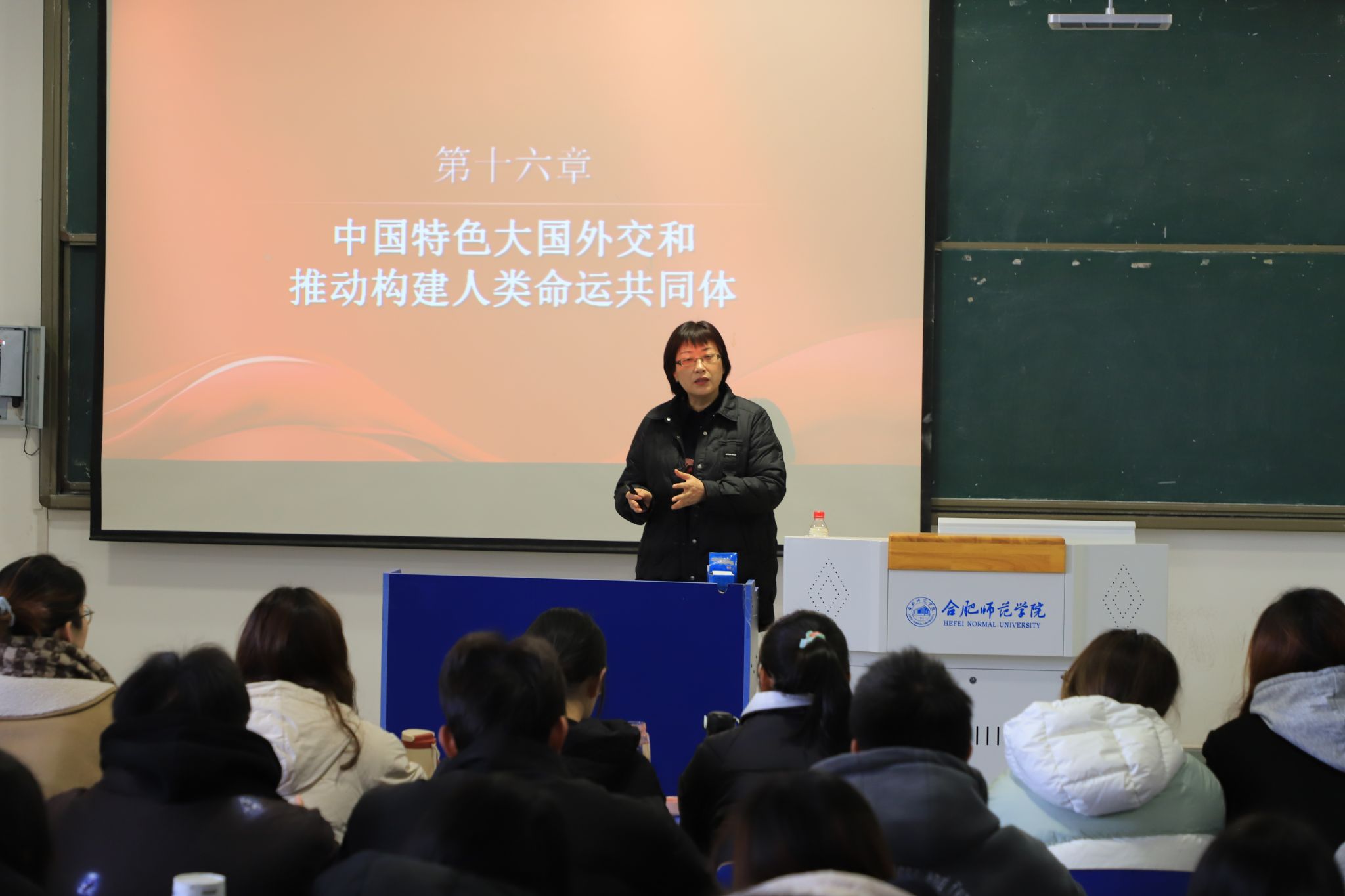 上午,方东玲围绕学习贯彻“习近平外交思想”专题,讲授了《习近平新时代中国特色社会主义思想概论》课程第十六章中国特色大国外交和推动构建人类命运共同体。她从“世界怎么了”“人类向何处去”“中国怎么办”三个方面来展开,结合鲜活的时事、案例来深入讲解习近平外交思想的总体框架和核心要义“十个坚持”,深刻解读中国奉行的外交政策和人类命运共同体理念所蕴含的是中国传统文化中的“和合”思想,是中华文明在历史积淀中坚持不懈的基本色调,也是中华民族从一而终恪守的信念,鼓励同学们争当中华优秀传统文化的弘扬者、践行者,批判美国奉行的零和思想,坚定文化自信、历史自信,致力于推动中华优秀传统文化创造性转化、创新性发展,为建设文化强国、建设中华民族现代文明添砖加瓦。