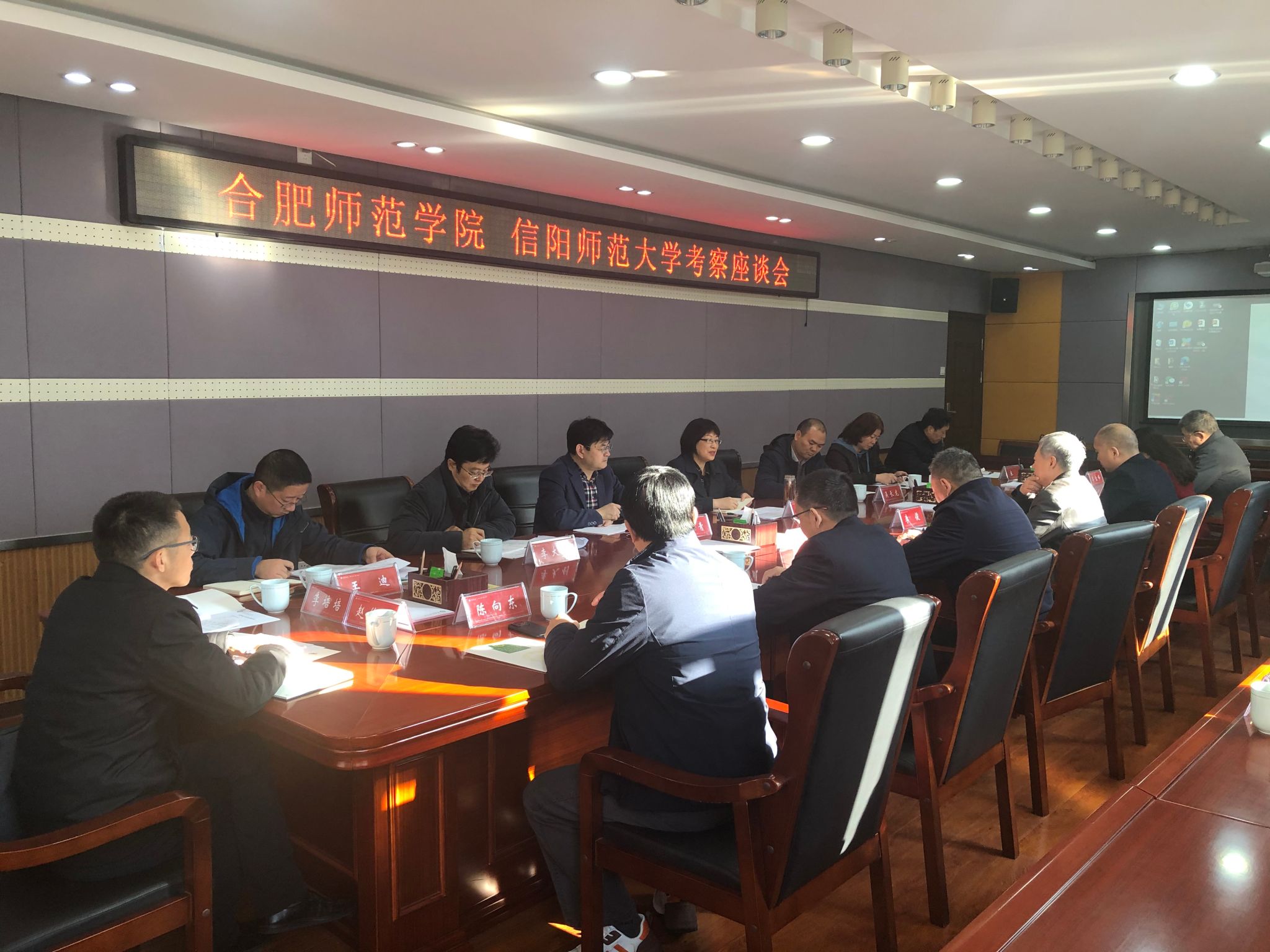 信阳师范大学校长办公室、发展规划处、人事处、财务处、教务处、科技处、研究生处、社会科学处等单位负责人参加调研座谈。(发展规划处)