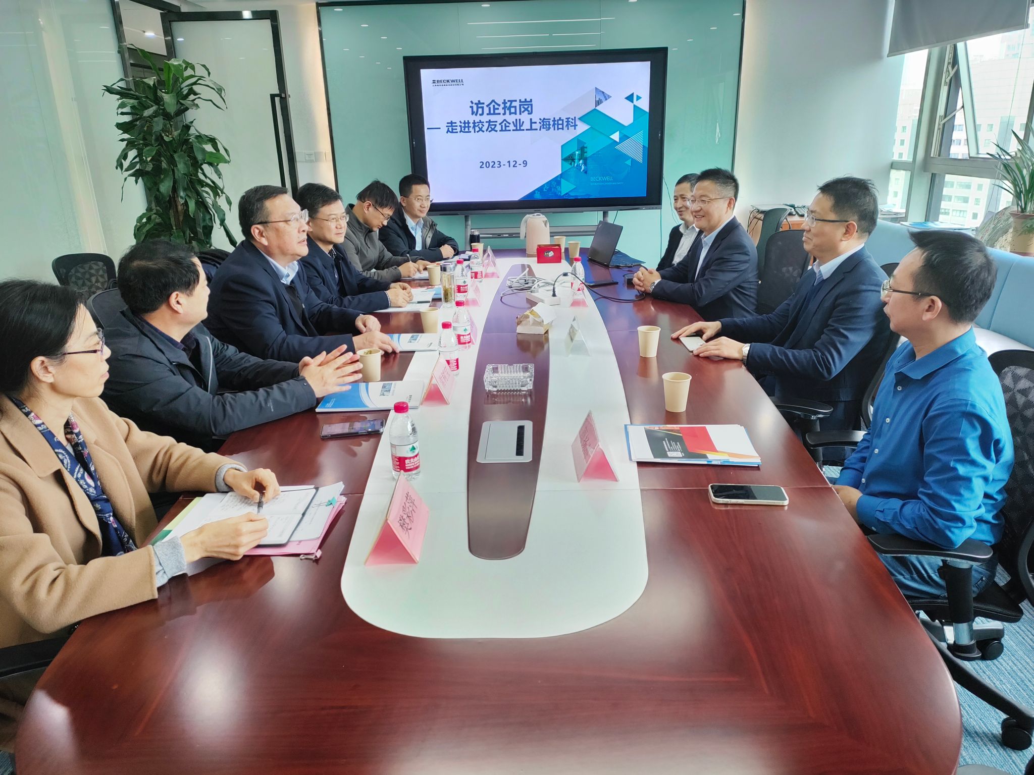 9日上午,徐成钢一行走访了校友企业上海柏科管理咨询股份有限公司,看望公司董事长曹鹏校友。第四届上海校友联谊会总召集人潘定春及周扬海、王瑞华校友陪同走访调研。