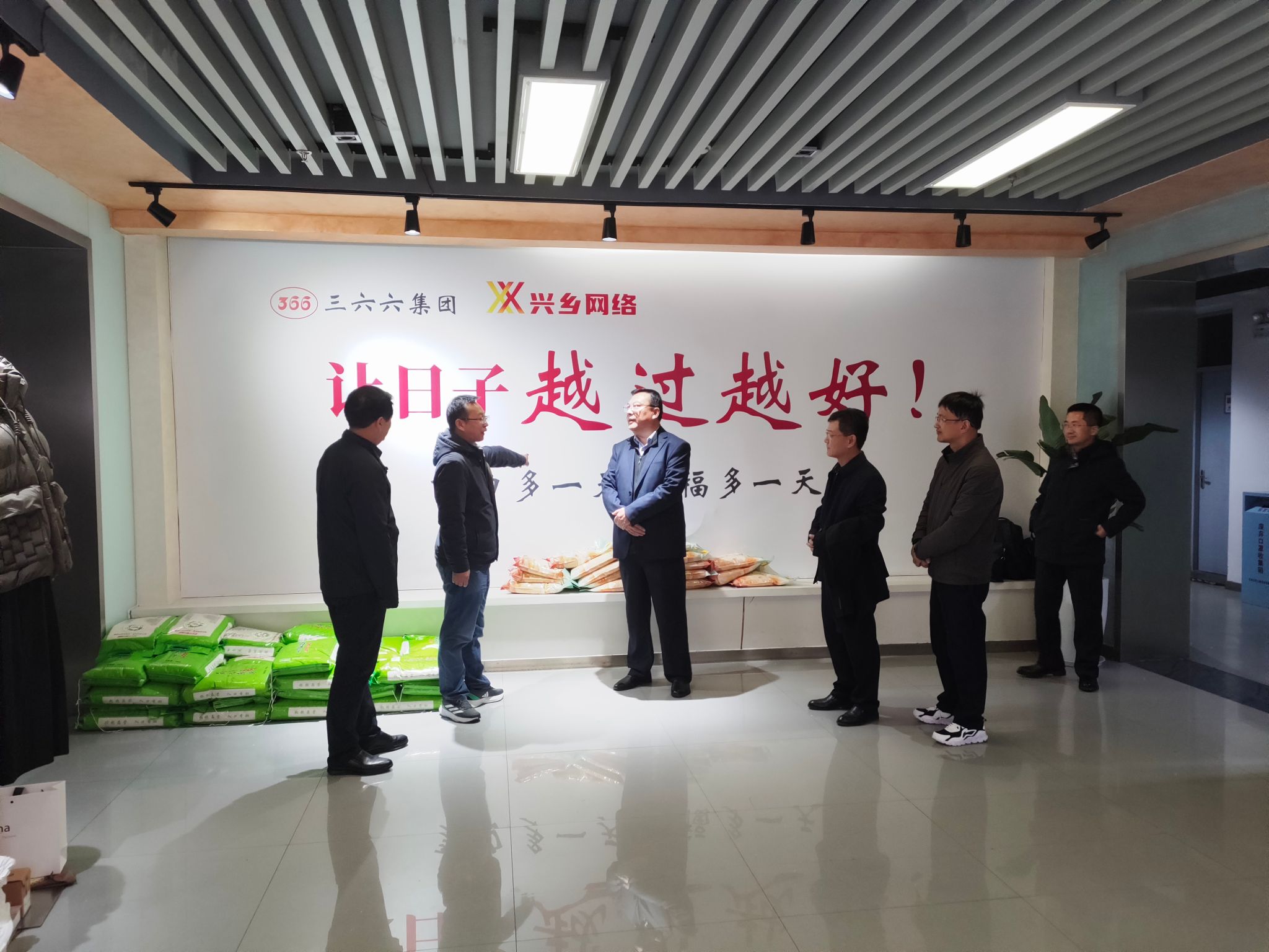 在兴乡网络公司,徐成钢一行走进各个展厅,详细了解公司业务运营和人才需求情况等,为公司立足于服务乡村振兴、呈现良好的发展态势感到由衷的高兴,感谢三六六集团长期以来对学院的支持与帮助。双方围绕大学生创业、就业问题进行了交流,并探讨如何进一步巩固与深化校企合作,实现共赢。
