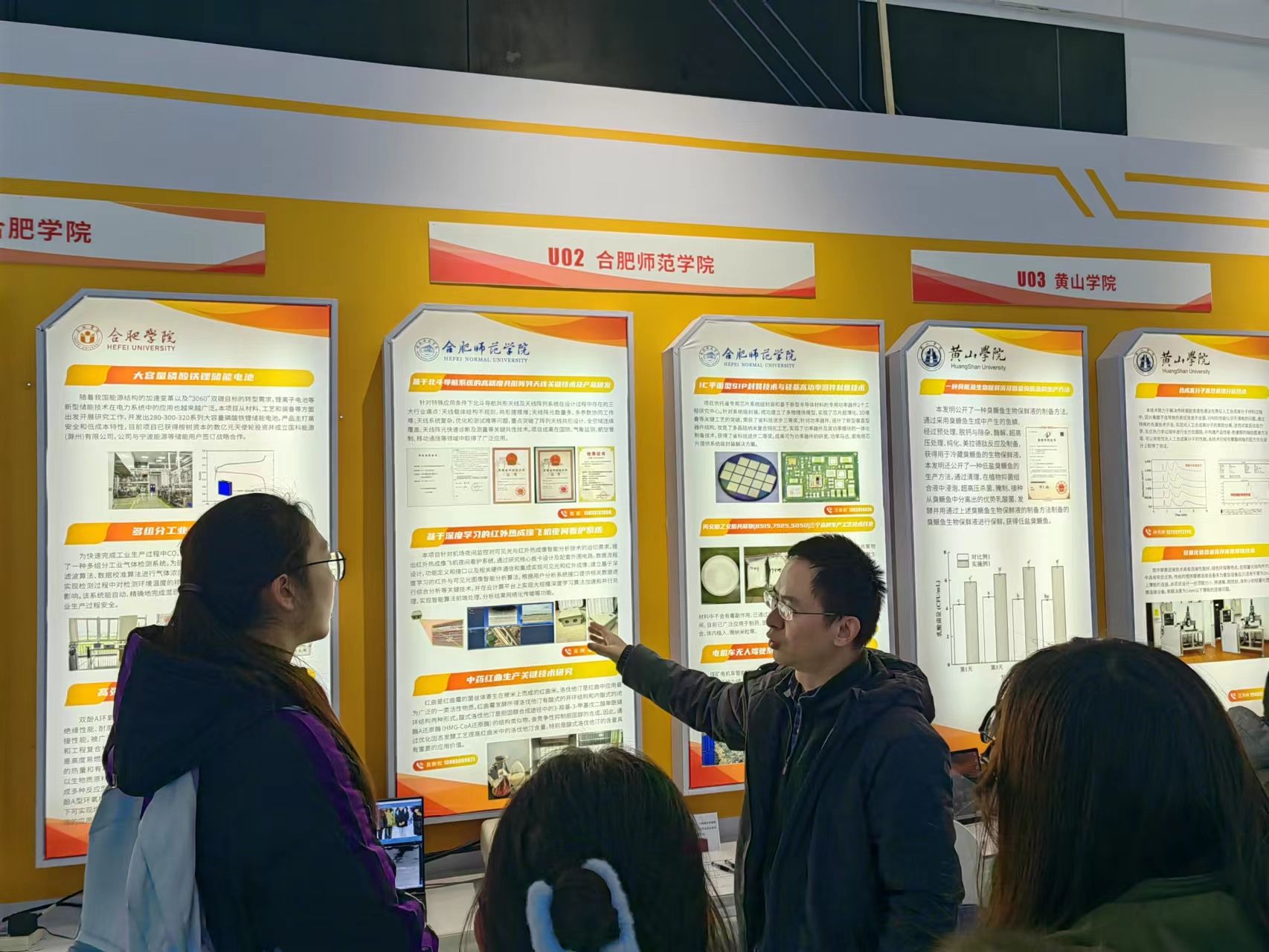 学院高度重视参展高??平换峁ぷ鳎蒲写ηM?,物理与材料工程学院、化学与制药工程学院、电子信息与集成电路学院、计算机与人工智能学院、生物与食品工程学院等各二级学院高度重视、积极准备,各相关职能部门积极配合,以展板形式充分展示科研团队和科研水平,更有部分院系和教授现场展示科研成果实物,让参观者“零距离”感受我院科研实力。