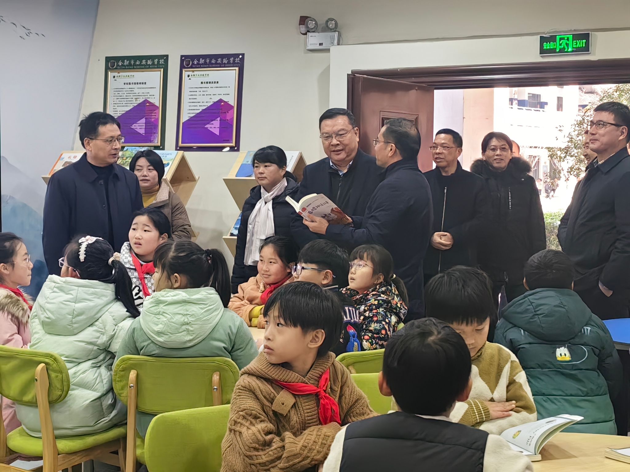 徐成钢一行来到学校图书馆,观看孩子们的阅读课程;走进厨艺坊,现场了解学校特色劳动教育课程建设情况;实地查看了学校艺体功能室建设及课程设置情况;走进一年级数学组办公室慰问一线教师。徐成钢一行对附属学校德智体美劳五育课程建设取得的成绩、对学校校园文化建设及老师的精神风貌表示赞许。