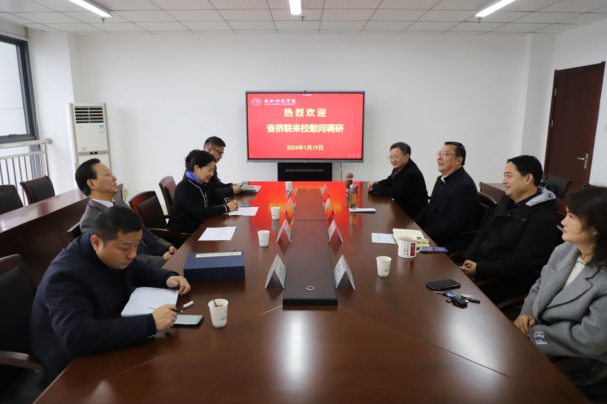 本网讯 1月19日,安徽省侨联党组书记、主席李世蕴,省侨联党组成员、秘书长刘君一行来我校慰问指导。党委书记徐成钢,党委委员、宣传部部长、统战部部长常树宝,校侨留联会长许俊农陪同慰问,并座谈交流。