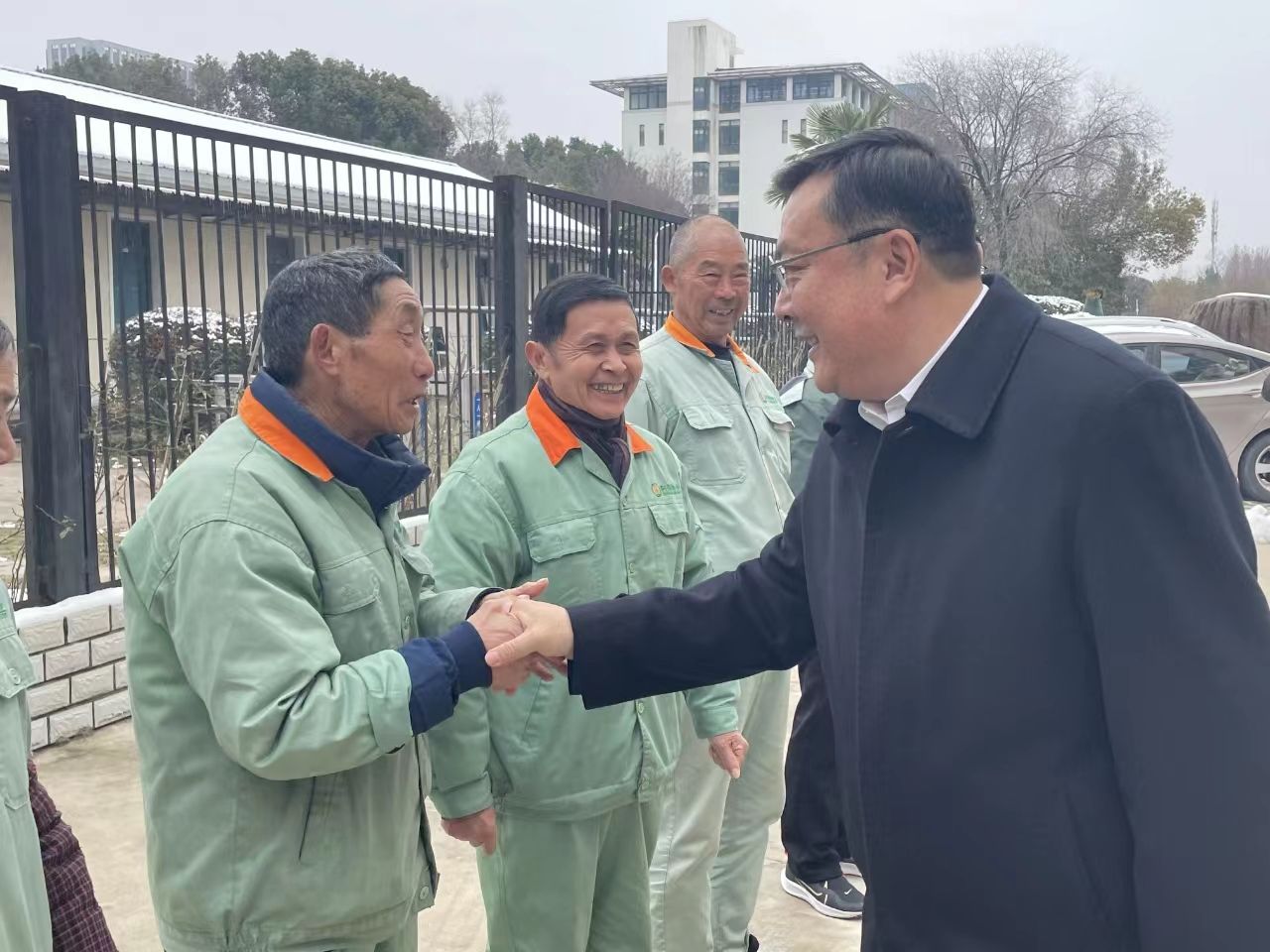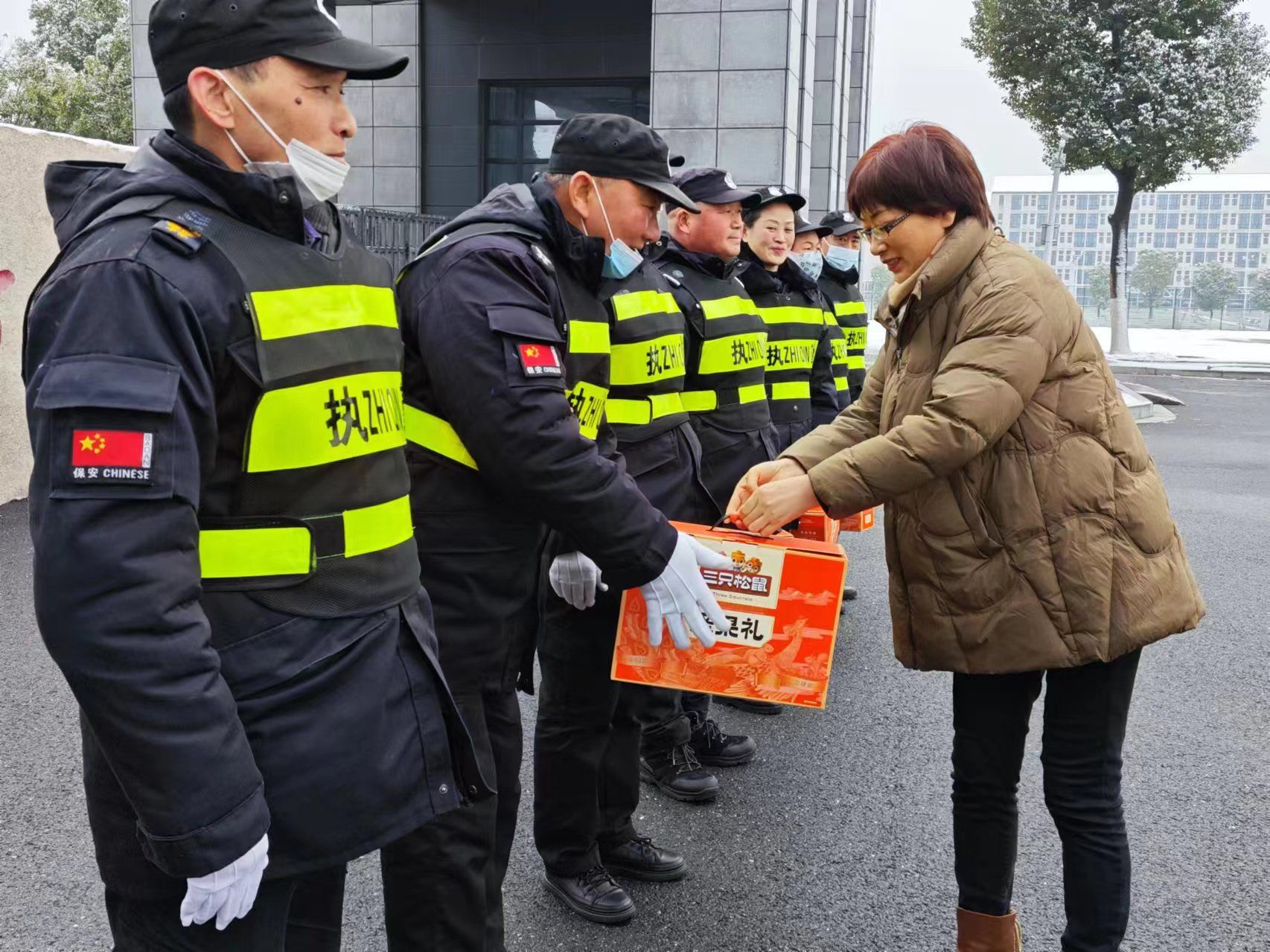 方东玲一行实地查看了滨湖校区门卫岗亭、物业服务中心、校园楼宇等,并详细询问了春节期间校门管控、安全保卫、后勤保障等情况,要求时刻绷紧安全稳定这根弦,认真履职尽责,做好值守轮换交接,落实落细安全保障和后勤服务工作。同时,嘱咐大家注意防寒保暖、保重身体,代表学院赠送了慰问品,并向他们及家人致以节日问候和祝福。方东玲还察看了滨湖校区二期工程现场。