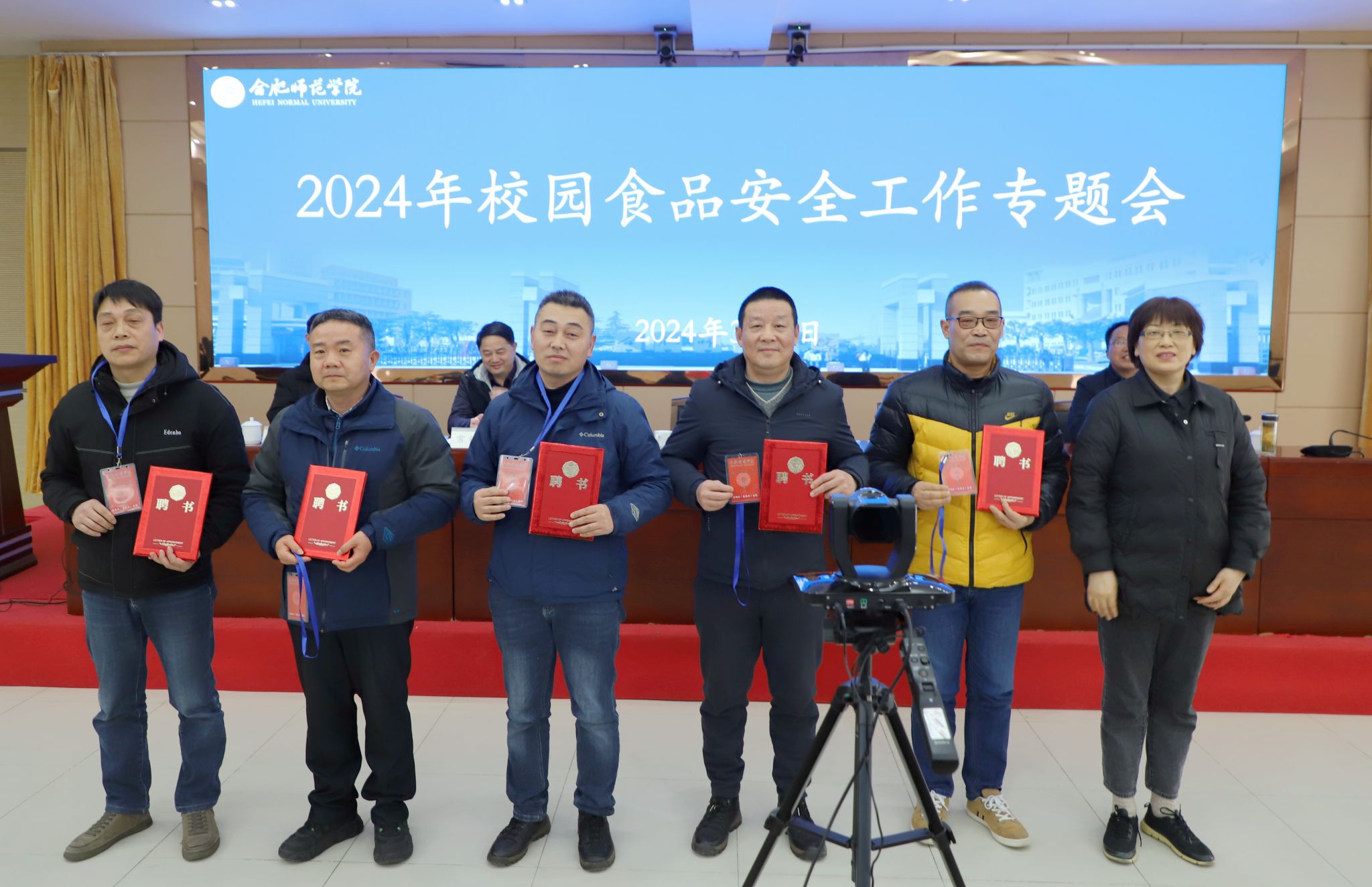 本次会议采用主-分会场形式,滨湖校区食品从业人员在滨湖校区学术报告厅观看视频直播。后勤处(基建办)负责人李建礼领学了《全省校园食品安全排查整治专项行动实施方案》《集中用餐单位食堂防鼠八项措施》等相关文件,对2023年校园食品安全工作简要回顾,并对2024年校园食品安全工作做出部署。