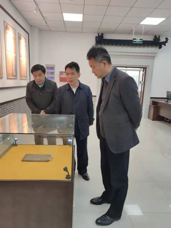 徐文林一行来到古籍室,听取了图书馆负责人关于古籍室建设情况汇报,充分肯定了古籍室的建设成效,指出古籍是学校的宝贵财富,古籍室是校园文化的一个亮点,要发挥我校古籍的比较优势,做好开发利用,充分发挥文化育人作用。同时要做好古籍保护,优化古籍库房管理,完善安全措施,确保古籍资源安全。