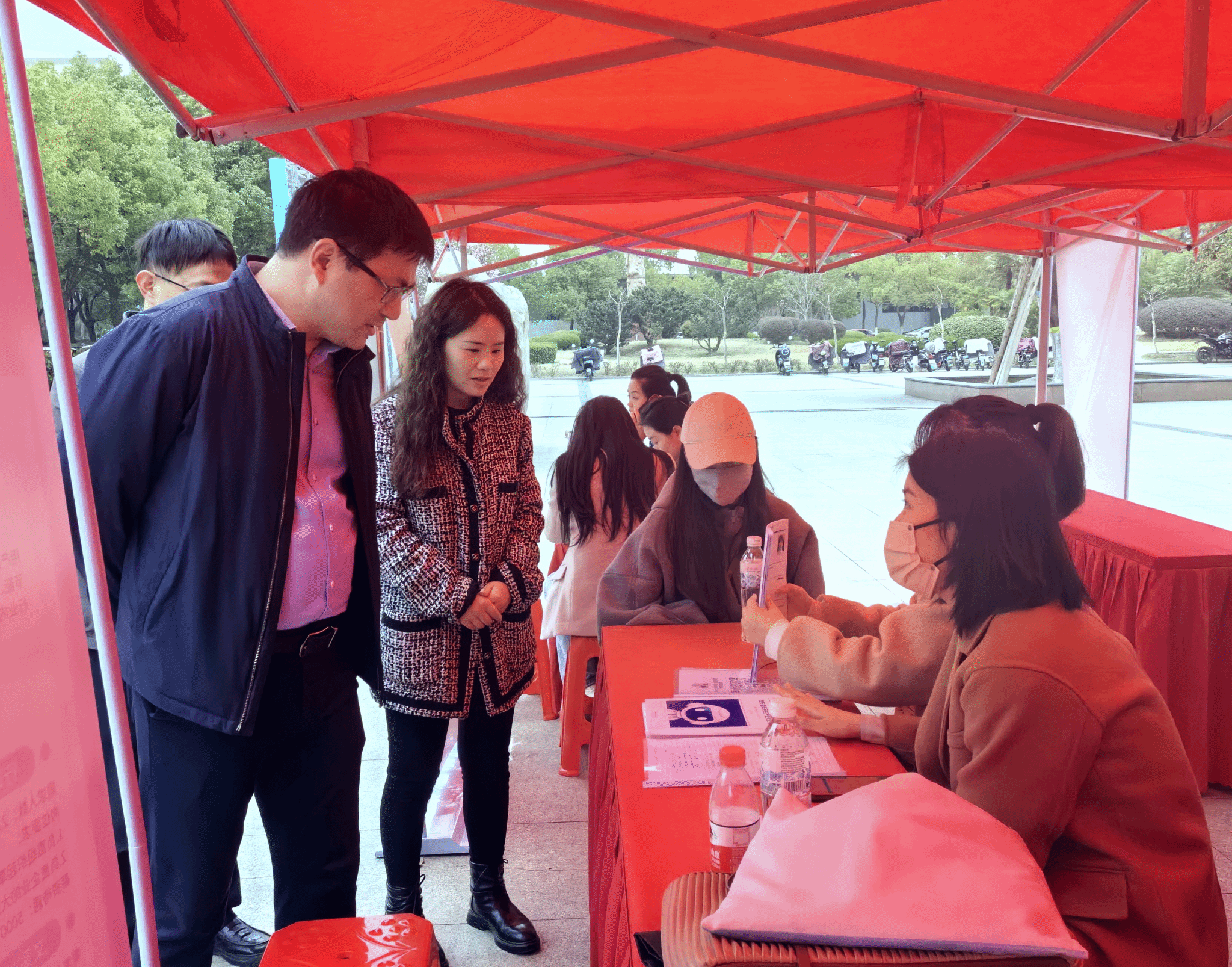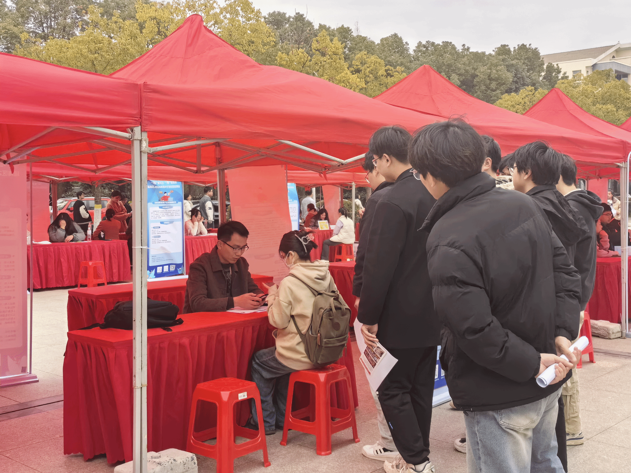 本网讯 为继续拓宽毕业生就业市场,充分发挥校园招聘会在促进毕业生就业方面主渠道作用。3月13日下午,学院联合合肥市瑶海区共同举办的招才引智校园专场招聘会在锦绣校区逸夫广场举行。学院党委委员、副院长周端明深入招聘会现场指导并与用人单位代表和毕业生亲切交流。