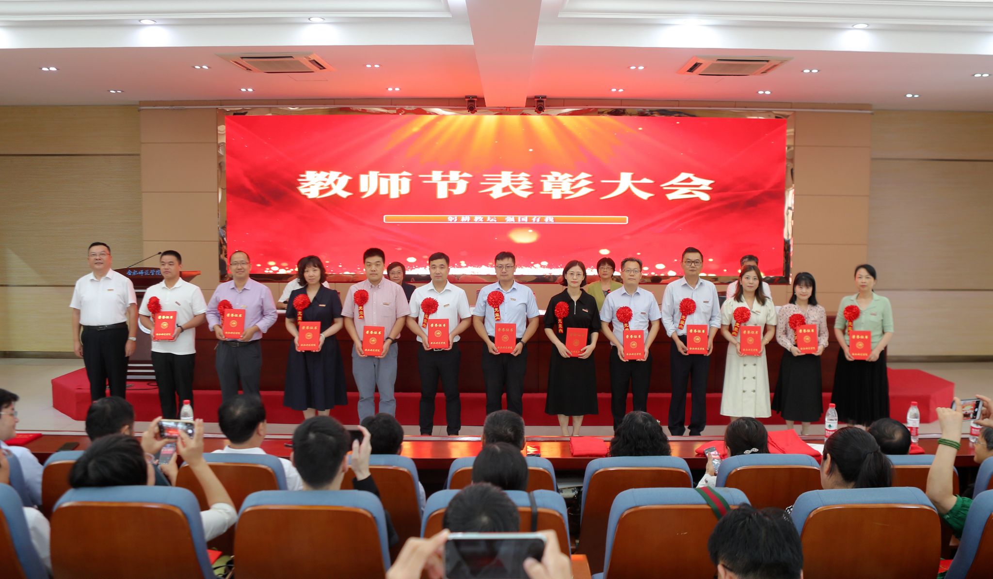 2023年9月,学校举行教师节表彰大会(朱玉利:右五)