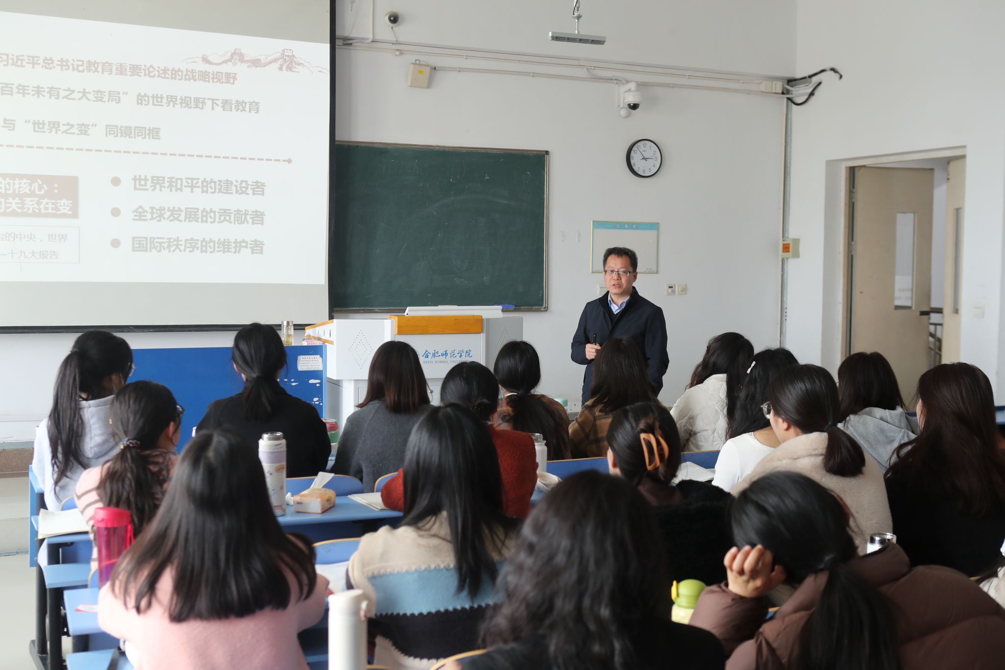 作为思政课教师,在完成教学科研工作的同时,朱玉利还经常深入中小学、工厂企业宣讲习近平新时代中国特色社会主义思想,推动党的创新理论入脑入心、见行见效。他围绕“党史学习教育”“学习贯彻党的二十大精神”等主题,先后在我校多个学院以及合肥市第四十八中学、安徽路桥集团等为师生、企业职工做理论宣讲。