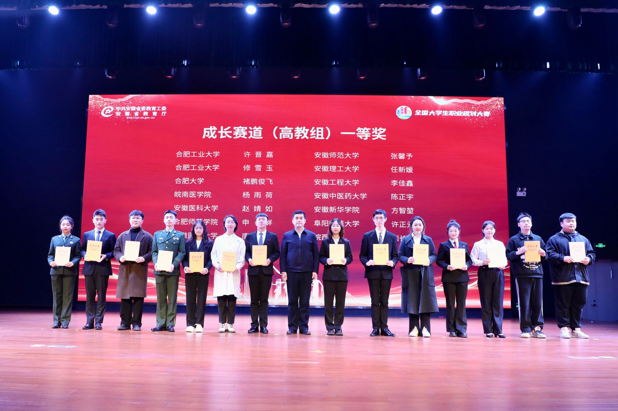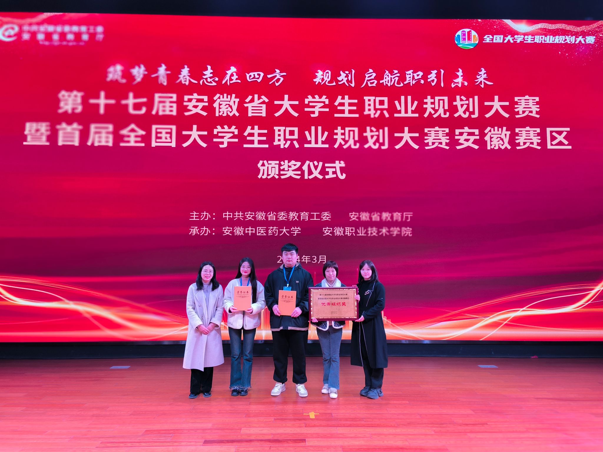 本网讯 3月12日至14日,由安徽省教育厅主办的第十七届全省大学生职业规划大赛暨首届全国大学生职业规划大赛安徽选拔赛总决赛在安徽中医药大学落下帷幕,来自全省88所高校218名大学生参加总决赛。经过激烈角逐,我院电子信息与集成电路学院申祥同学和文学院安晓晓同学分别荣获成长赛道和就业赛道一等奖,我院荣获大赛优秀组织奖。这是我院自第十三届大赛以来连续五届荣获安徽省职业规划大赛一等奖和优秀组织奖。