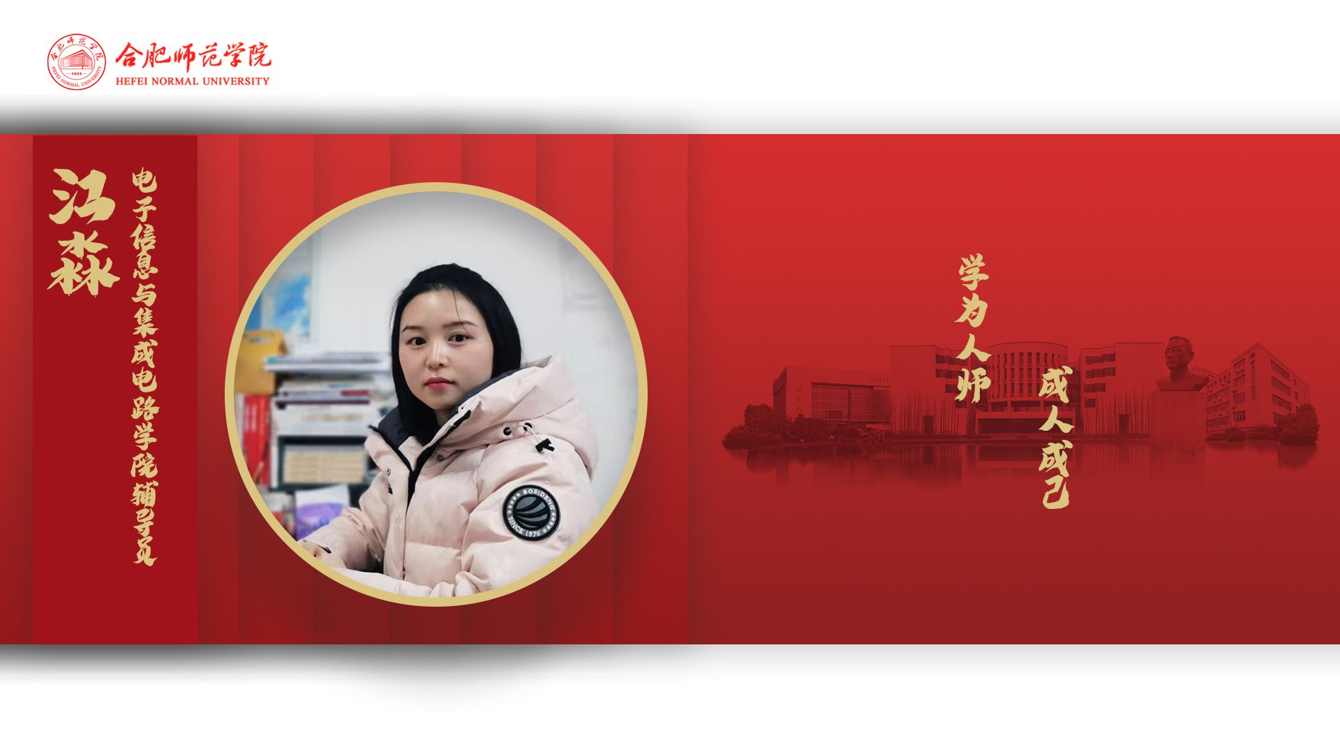 入校工作以来,她探索“融媒体+思政育人”模式,创设提出“一心两翼三合”班级管理制度,构建“一心两翼五协同”心理健康教育模式和全覆盖家校协同的“六位一体”学生安全防范体系,所带班级曾获评学?!笆延帕佳Х绨嗉丁薄拔逅暮炱焱胖Р勘瓯钡瘸坪?。她坚持“实干为要”,重实践、强规划、抓双创,增强育人效度。指导学生入驻学校大学生创业孵化基地,参与指导省级大学生创新创业训练计划项目2个,以第一指导教师身份指导学生参加各类比赛,荣获省级奖项2项、校级奖项30余项。她本人曾获评优良学风先进工作者、学生军训工作“优秀辅导员”、行知学堂优秀指导教师、暑期社会实践优秀指导教师、“青春学习营”优秀指导教师等称号;主持校级重点课题1项、参与省级重点课题1项。春风化雨润桃李,勤勉致知铸良才。未来,她将坚持“终身学习”,强化育人理念,做一名用心、用力、用情的“心”辅导员。