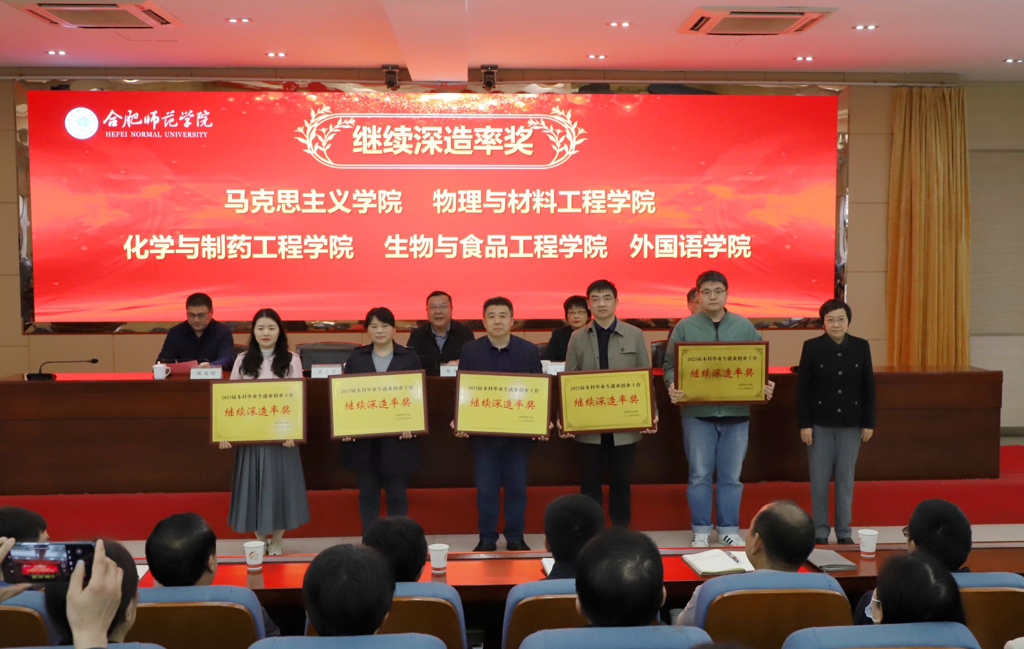 徐成钢、方东玲、梁立昌、华银峰、周端明等院领导分别向“标兵单位”代表、“先进个人”“任务完成奖”单位代表、“‘双创’教育奖”单位代表、“继续深造率奖”单位代表颁奖。