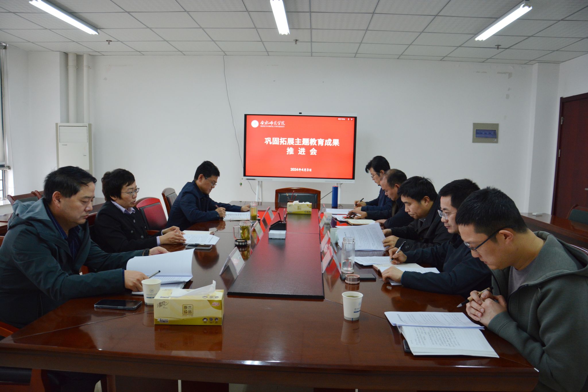 会上,赵帮恚传达了中央及省委巩固拓展学习贯彻习近平新时代中国特色社会主义思想主题教育成果等文件精神;与会部门分别就学院巩固拓展主题教育成果实施方案进行了交流讨论,明确了下一步部署安排。