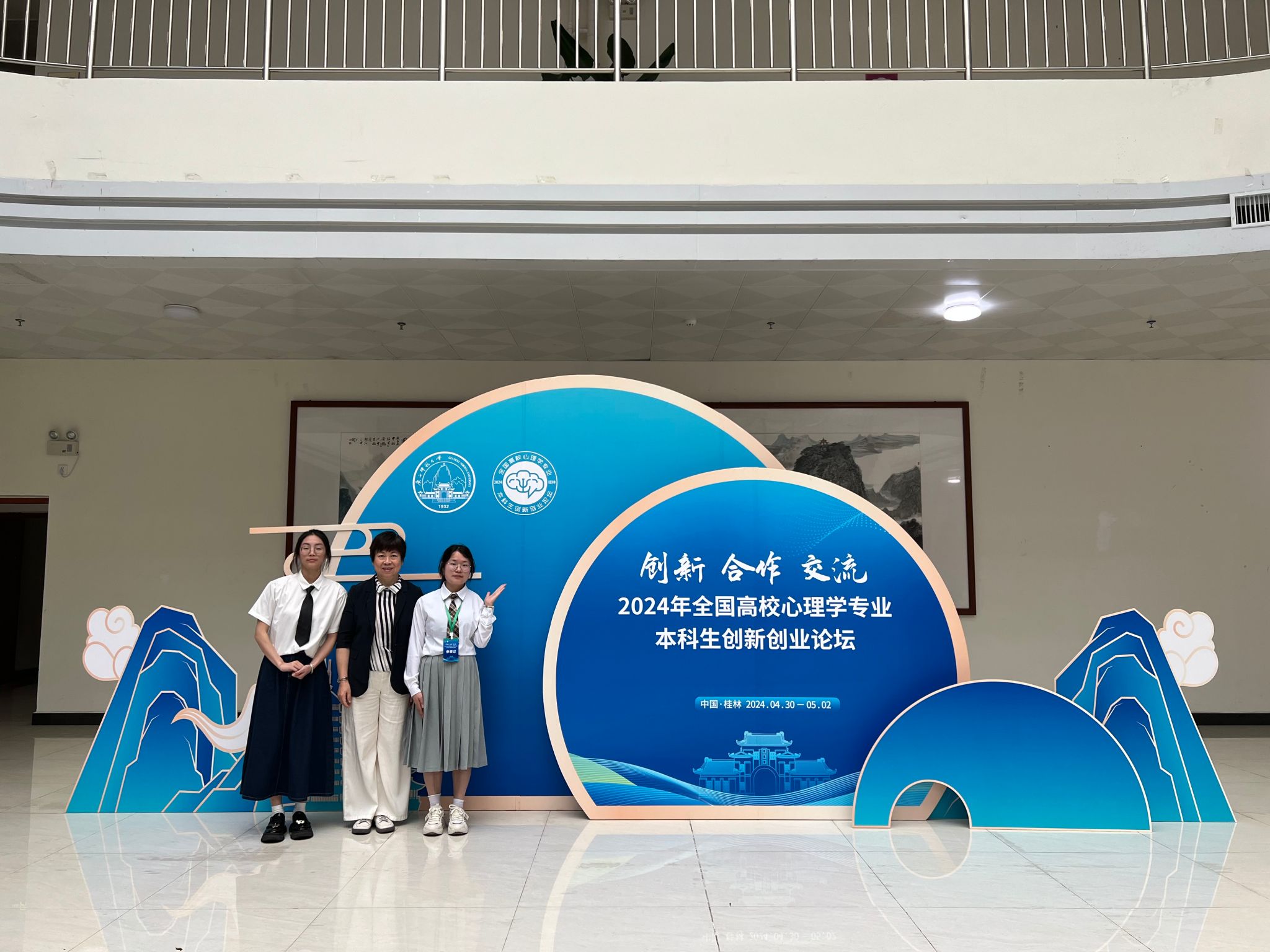 本网讯 5月2日,由教育部高等学校心理学类专业教学指导委员会主办,广西师范大学教育学部、心理学拔尖学生培养模式改革虚拟教研室承办,广西师范大学认知神经科学与应用心理高校重点实验室协办的2024年全国高校心理学专业本科生创新创业论坛现场展示在广西师范大学育才校区举行。我校教育与心理科学学院2022级应用心理学本科生邹雨叶、卢欣然两位同学组团(指导教师:陈庆华、带队教师:李群)参赛,并凭借出色的表现荣获一等奖。