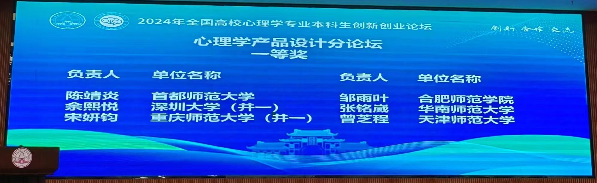 全国高校心理学专业本科生创新创业论坛的举办,旨在提升心理学专业本科生培养质量,促进全国各相关院校之间的相互交流,深入推进心理学人才培养工作。我院学生在此次论坛中展示了合师学子的良好风采,表现出扎实的专业知识和较高的综合素质。此次赛事由教育与心理科学学院学生发展指导中心协调组织,从准备省赛到入围国赛直至比赛前夕,为期整整四个月,期间比赛团队不断打磨作品,力求精益求精,最终取得优异成绩。