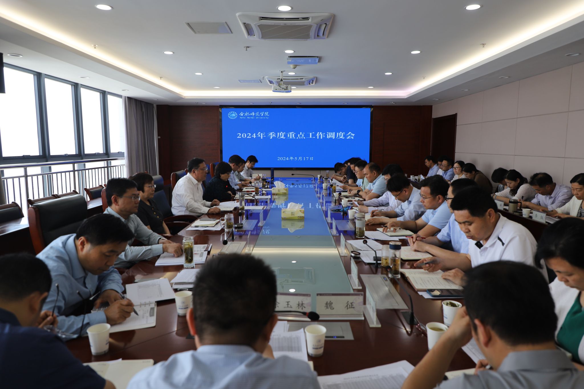 党委副书记、院长方东玲围绕一体推进“申硕更大”、硕士点建设、横向经费“赛马”、审核评估及其整改、国家师范类专业认证、高层次人才引育、大学生征兵与毕业生就业创业工作、滨湖校区二期建设、办学经费筹措与使用、巡视及审计整改等十项重点工作进行了部署调度,提出了工作要求。方东玲指出,要进一步优化工作统筹,不断完善季度重点工作调度机制,强化对重点工作的跟踪问效;各单位部门要进一步强化争先进位意识和干事创业鲜明导向,加强对外合作,注重协调联动,形成齐抓共管工作合力。