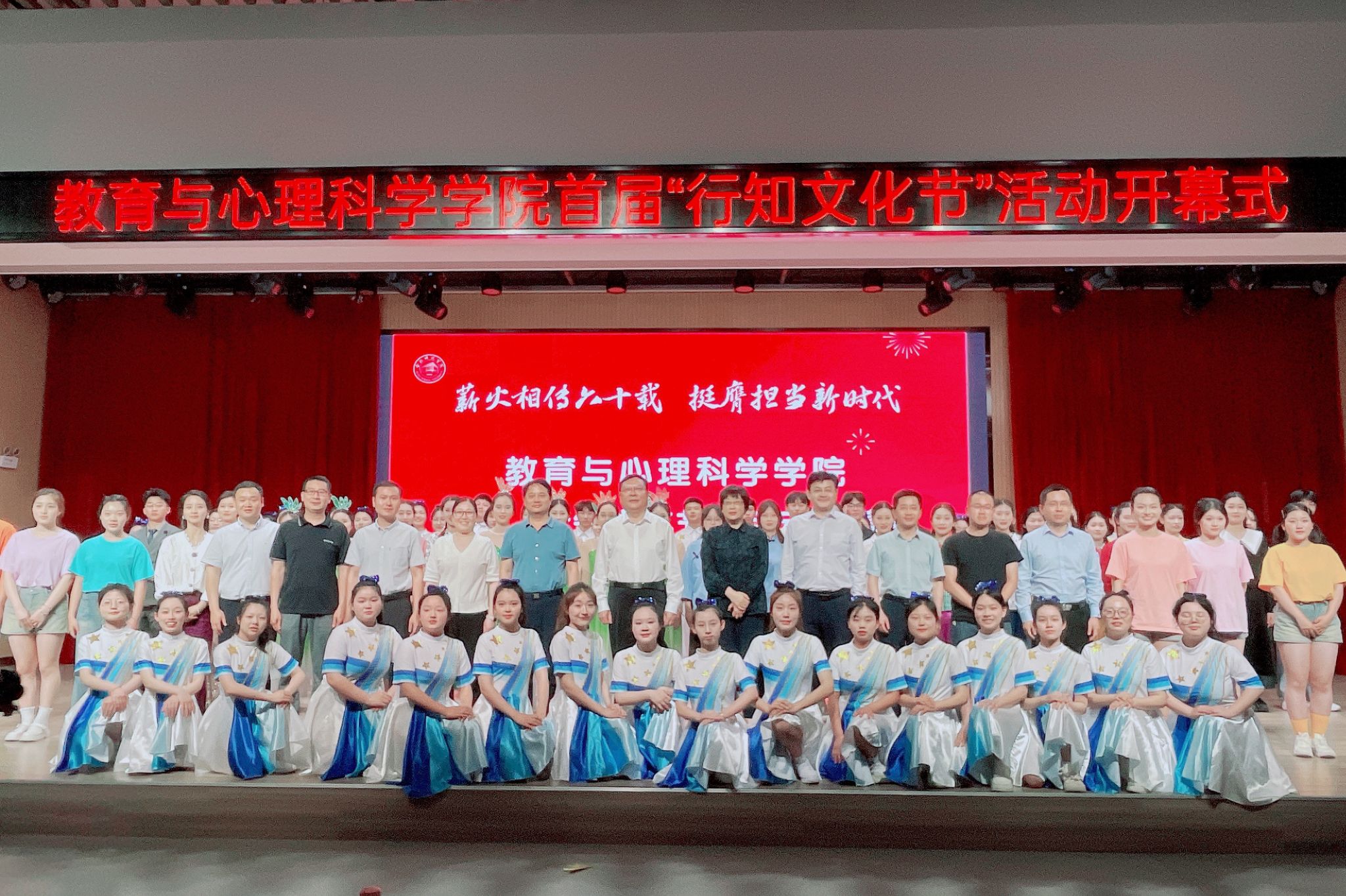 本网讯 为深入贯彻落实习近平总书记关于青年工作的重要思想,引导广大青年大学生德智体美劳全面发展,5月22日下午,教育与心理科学学院在锦绣校区大学生活动中心举行“薪火相传六十载 挺膺担当新时代”首届“行知文化节”活动开幕式。院党委书记徐成钢,院党委副书记、院长方东玲,院党委委员、宣传部部长、统战部部长常树宝及教务处处长钱立青,党政办主任朱玉国、副主任吴晓星等出席开幕式。教育与心理科学学院党政领导班子、全体教职工以及300余名学生代表参加活动。