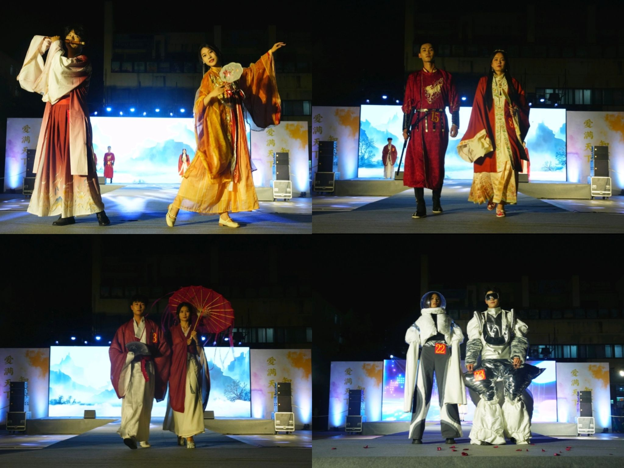 本网讯 青春之花,绚丽绽放。为进一步强化美育育人功能,5月31日晚,由院团委、美术与设计学院联合举办的第二十届校园模特时装大赛暨服装与服饰设计专业毕业作品展在锦绣校区生活广场举办,院团委、相关二级学院教师、相关职能部门教师、各二级学院团委书记及近1000名师生到场观看比赛。