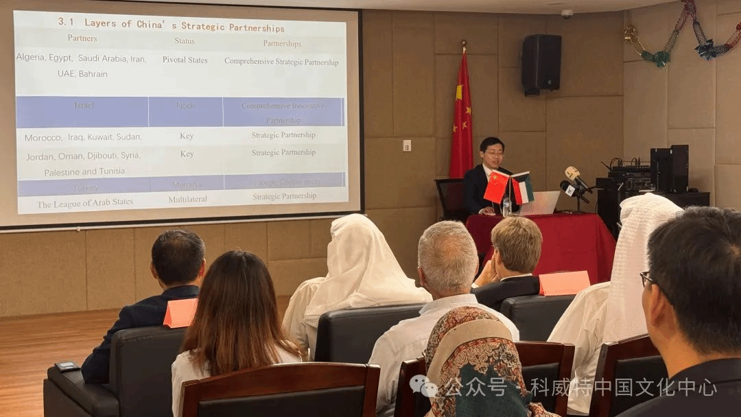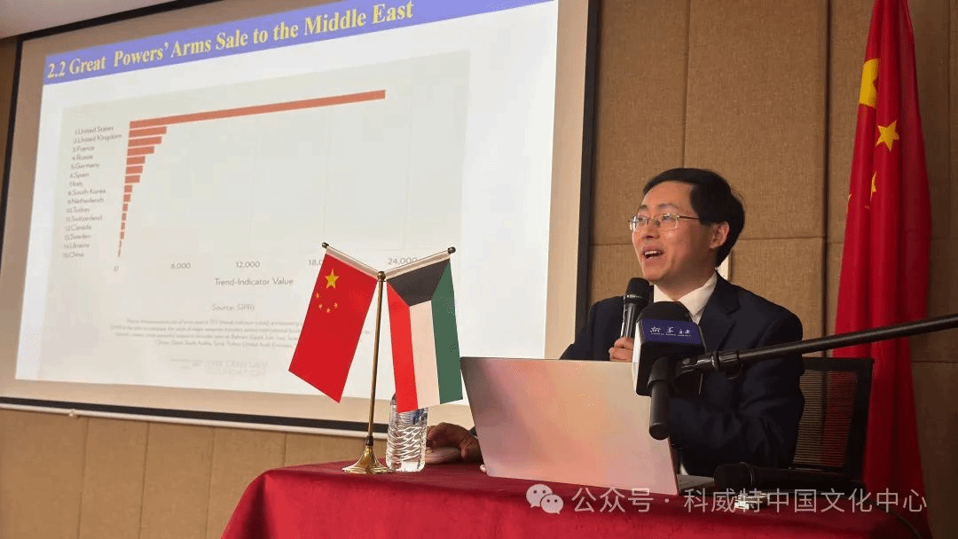 本网讯 据中国驻科威特大使馆微信公众号报道,11月4日,科威特中国文化中心举办“中国与中东关系”讲座,我院2000英语专业校友、复旦大学国际问题研究院院长助理、中国中东研究中心主任孙德刚教授应邀讲学,科威特政府官员、智库学者、外国驻科使节、学校师生、中国文化爱好者及中文学习班学员等60余人参加。