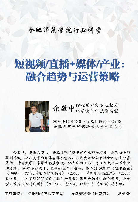 主讲人:余敬中 北京快手科技有限公司副总裁/92届中文专业校友